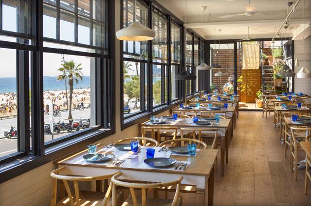 OFFERING: Specialists in rice dishes, all the rice is sourced from the Delta del Ebro and served collectively at the table or individual portions: ‘Bomba’ Paella Rice served with Squid, Market Fresh Fish, Mussels, Clams and Parsely; ‘Black’ Rice Casserole; Rice with Artichokes, Sepia and Sausages; Ecological Vegetable Rice. HIGHLIGHT: their commitment to excellence in rice and fish dishes, prepared using natural organic ingredients, locally sourced. INTERIOR: A two storey building looking over the sea. A prime location at the heart of Barceloneta with spectacular views over the beach. There is a terrace and snack bar located on the ground floor where tapas, vermouth and canned food are served, while the upper floor accommodates the restaurant, with an open kitchen and seating for approx 80 diners. RECOMMENDED: signature rice dishes and fresh fish straight from the fish market in Blanes on the Costa Brava (the house speciality), as well as salads and well-crafted classic tapas like Croquettes, Mussel & Cod ‘Buñuelos’ (fritters) with Tomato confit and Basil. PRICE: from 35-40 Euros.