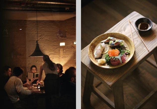 INTERIOR: In collaboration with Lekuonastudio, a cozy and comfortable place with a separate sushi area and a central space in front of the robata. RECOMMENDED: Trying as many options as po-ssible and getting expert advice from Camila.