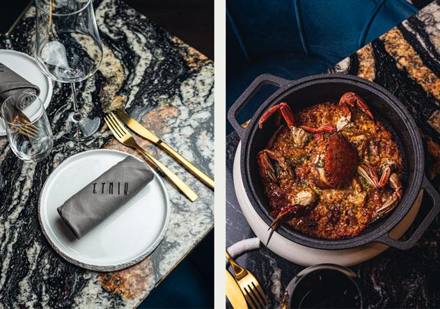 ensuring that everything here is delicious. INTERIOR: A sophisticated and decadent setting that will make you feel like Jay Gatsby and Daisy Buchanan during the Roaring Twenties. Striking use of colour, gold, patterned wallpapers with a vintage patina, curious decorative objects, marble... The lower level, with capacity for 30 people, hosts group dinners, tastings and events. It also has a terrace for a cocktail or the first drink of the evening. RECOMMENDED: The Liquid Iberian ham croquettes. The Seared volandeiras with Mery sauce. That house speciality Surf and Turf. The Charcoal-grilled octopus with hummus, bacon and Gochujang dressing. The Eel, foie gras and eggplant with kabayaki sauce, the Salmorejo with shrimp tartar, the Steak tartar prepared by the maître d’ at the table. The Crab rice. Afterwork drinks with The Macallan. Live music on Fridays and Saturdays. PRICE: 39 EUR.