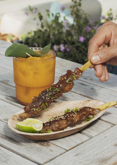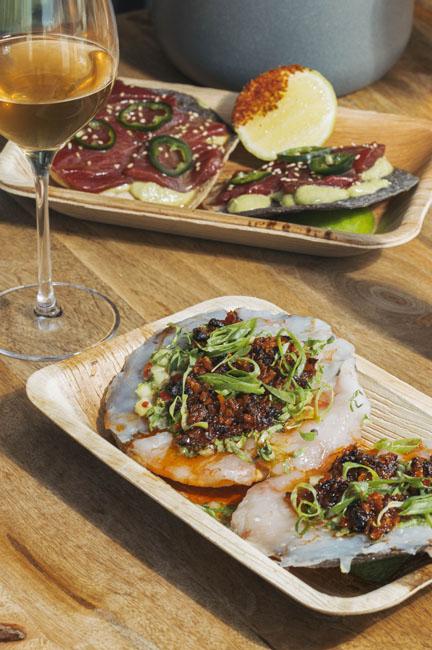 For nibble, simple dishes, if necessary cooked over a flame of burning charcoal, made with local products, because "sustainability is the ethical core of this project", says the chef. Padrón Peppers with chipotle salt and lemon peel; Guacamole with pico de gallo, red sauce and blue corn tortilla chips; Mexican Ensaladilla with potato, tuna, fresh peas and radicchio; Cobb Avocado Salad with habanero honey, Cabrales cheese, ham and roasted corn; Scallop Aguachile; Raw Red Prawn Tostadas with white asparagus and carabinero oil; Crispy Calamari with yellow lime mayonnaise and seaweed; Fried Chicken with taco sauce; Anticuchos (skewers) of Iberian Pork with white onion and chimichurri.... and to finish, Burnt Cheesecake with almond dulce de leche or Fresh Fruit with house tajine.
